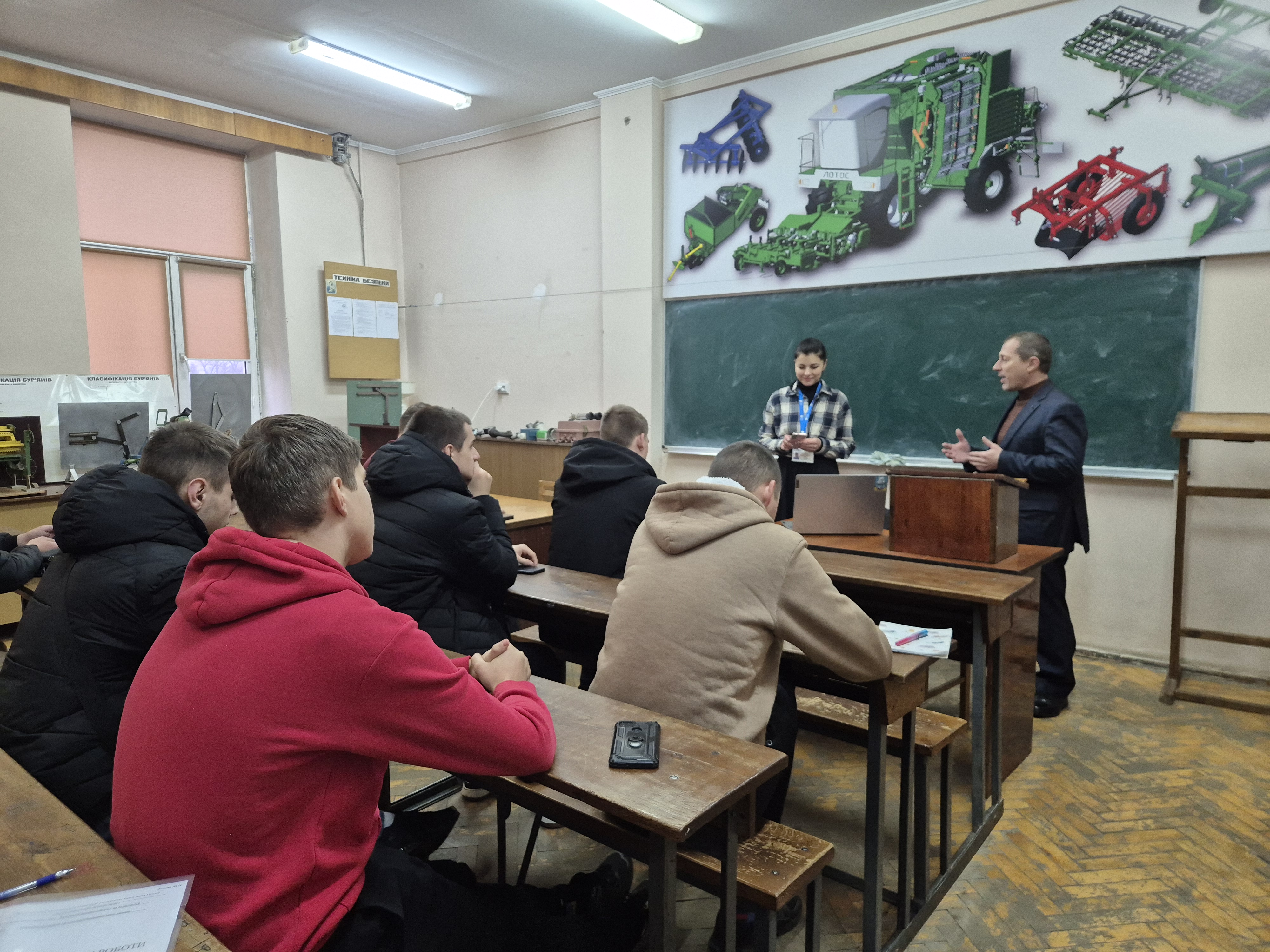 Зустріч складалася із гостьової лекції, що була проведена експертами відповідних ланок компанії, та практичного заняття, де здобувачі освіти ознайомилися з окремими сільськогосподарськими машинами, особливостями їх експлуатації та ремонту.