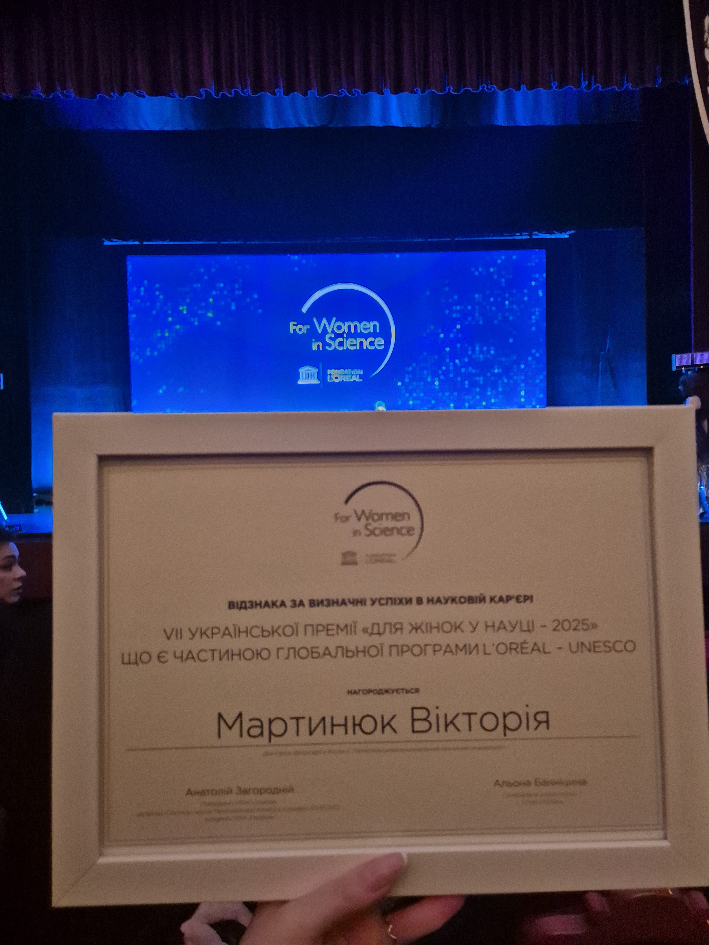 26 листопада 2025 року у Київському національному академічному театрі оперети відбулася урочиста церемонія нагородження лауреаток премії L’Oréal – UNESCO «Для жінок у науці». Цьогорічний захід об’єднав науковців, представників влади, дипломатів і лідерів думок, що підкреслює важливість наукових досліджень та ролі жінок у науці.