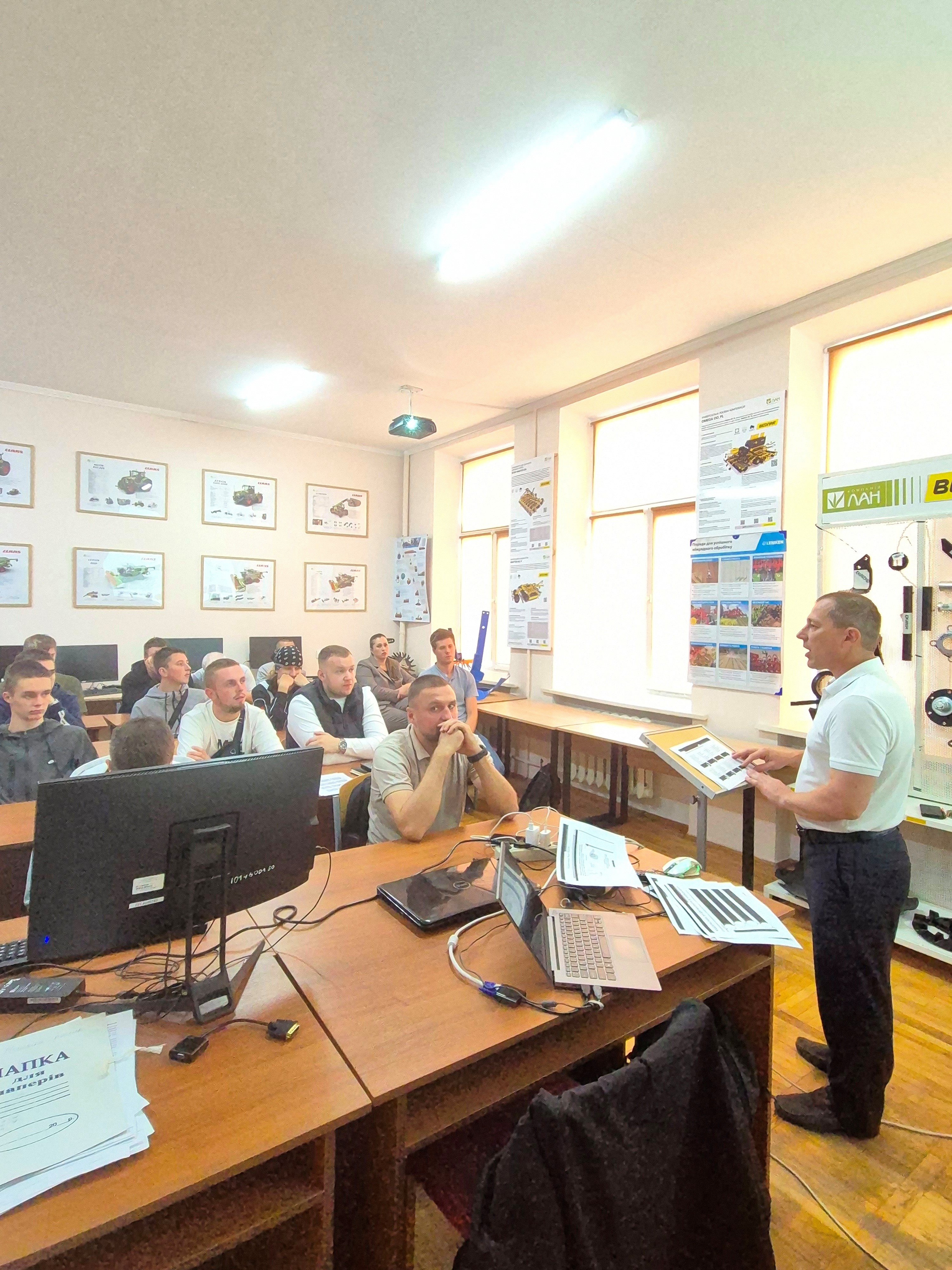 Розвиваючи практичну співпрацю з компанією ЛАН, головний інженер Микола Василинич в черговий раз провів лекційне заняття для здобувачів освіти спеціальності 208 «Агроінженерія» в ТНТУ. При викладі матеріалу на тему «Машин для збирання зернових культур», він познайомив слухачів з новинками техніки, вказав на переваги інноваційного обладнання сучасних зернозбиральних комбайнів CLAAS.