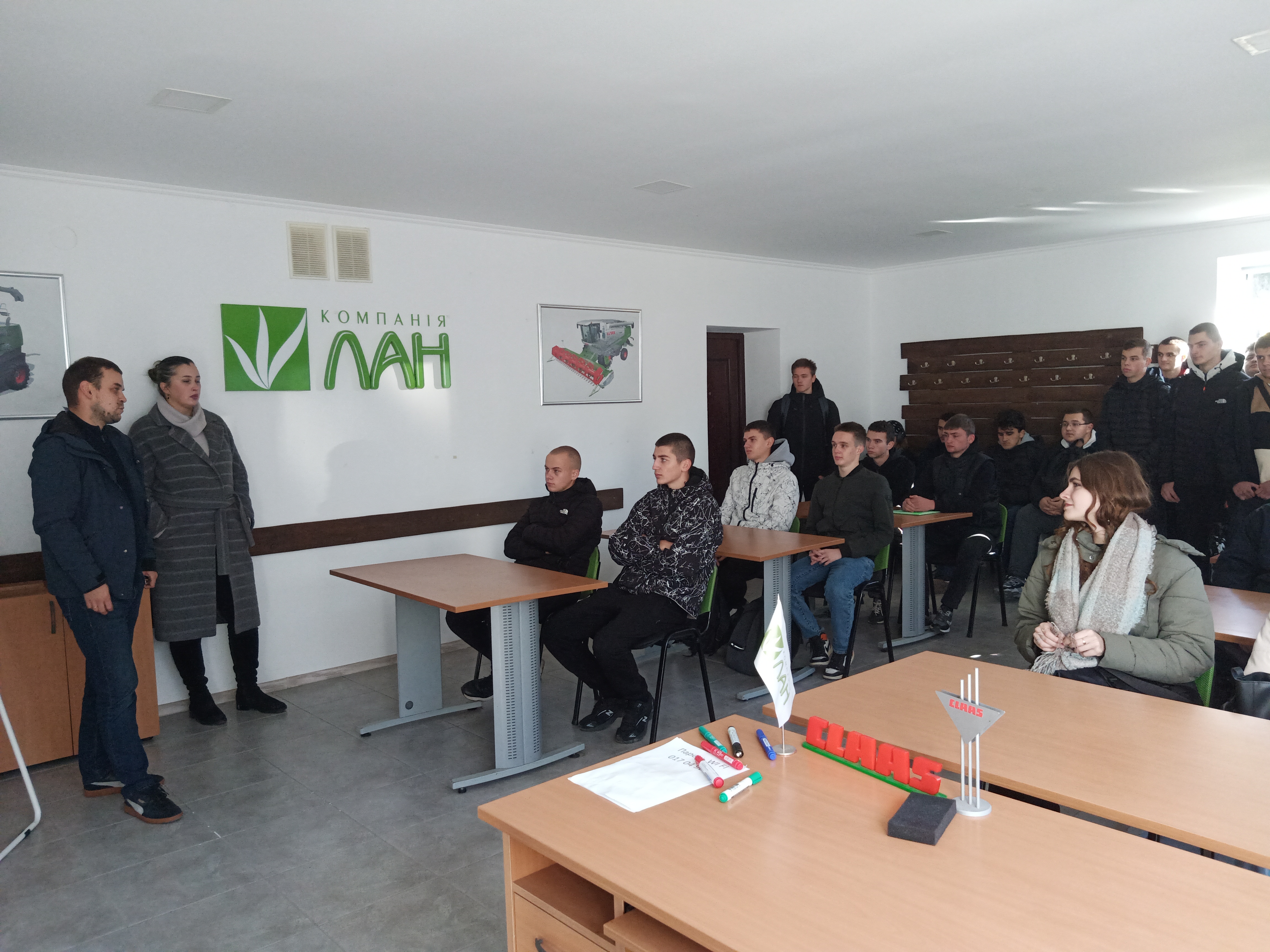 Заняття розпочалися із слухання лекції про перспективи розвитку аграрного виробництва в Україні та роль ТОВ «Компанія ЛАН» в цьому процесі, яку прочитав маркетолог компанії Назарій Малевич.